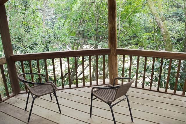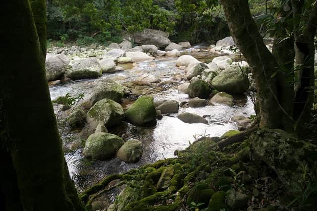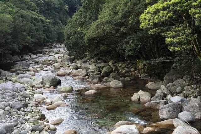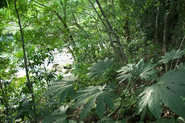 川辺には屋久島の里地を象徴する照葉樹林が今も残ります。